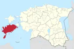 It is one of three parishes comprising the county, along with Muhu and Ruhnu parish. It was formed following the 2017 Estonian municipal reform on 21 October 2017, on the basis of all twelve former Saaremaa municipalities: Kuressaare town and Lääne-Saare, Kihelkonna, Laimjala, Leisi, Mustjala, Orissaare, Pihtla, Pöide, Salme, Torgu and Valjala parishes.[1][2]
