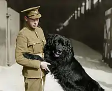 Sable Chief was a Newfoundland dog that served as the mascot of the Royal Newfoundland Regiment during World War I. He was presented officially on 1 Oct 1914, before troops left St. John's on the SS Florizel, by James R. Stick of the Royal Stores, Ltd, father of Leonard Stick, the first man to enlist in the regiment.[1][2] Prior to his official presentation, the mascot was photographed at the Pleasantville training camp in Sept 1914 with Prime Minister Edward Patrick Morris (1859–1935), Governor Sir Walter Edward Davidson (1859–1923), Capt. William Hodgson Franklin (the first Commanding Officer of the Newfoundland Regiment), Capt. J. W. March, Capt. Cluny Macpherson (1879-1966) (Principal Medical Officer, 1st Newfoundland Regiment and inventor of the gas mask), and other dignitaries.[3]