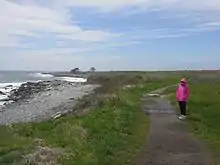 Sachuest Point was home to several military facilities in the 20th century. During the US participation in World War I, two 4.7-inch Armstrong guns were transferred from Fort Strong in Boston Harbor to provide some protection against German U-boats. "Sachuest Point" is misspelled in Army records for these guns as "Sauchet Point". The guns were removed in 1919; one was scrapped and one is a memorial in Ansonia, Connecticut.[4] During World War II, the United States Navy established a communications station (NAVRADSTA Sachuest Point, part of NAVCOMMSTA Newport) and a rifle range.[5] The remains of the rifle range still exist. The communications station was closed and demolished in 1973.[6] At some time the United States Army Coast Artillery Corps erected fire control towers on Sachuest Point, probably in World War II to support Fort Church in Little Compton, which guarded the Sakonnet River and the eastern approaches to Narragansett Bay. These were probably abandoned after the war, and were demolished in the late 1970s.