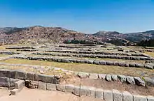 Located on a steep hill that overlooks the city, the fortified complex has a wide view of the valley to the southeast. Archeological studies of surface collections of pottery at Sacsayhuamán indicate that the earliest occupation of the hilltop dates to about 900 CE.[8]