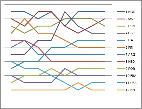 Graph showing the daily standings in the Dragon during the 1948 Summer Olympics