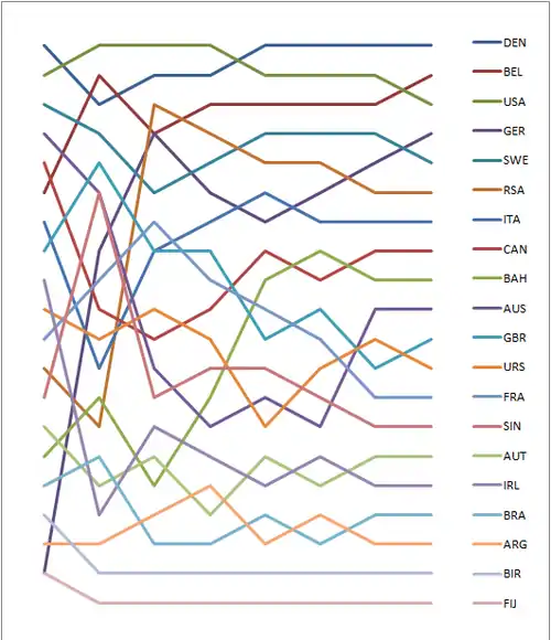 Graph showing the daily standings in the Finn during the 1956 Summer Olympics