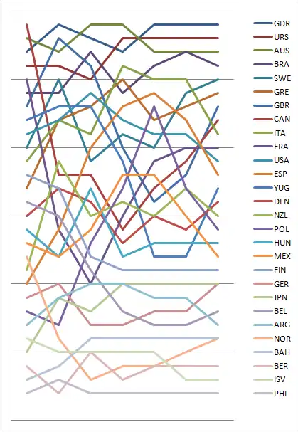 Graph showing the daily standings in the Finn during the 1976 Summer Olympics