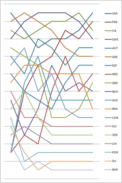Graph showing the daily standings in the Star during the 1984 Summer Olympics