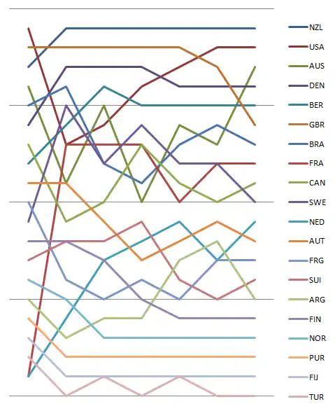 Graph showing the daily standings in the Tornado during the 1984 Summer Olympics