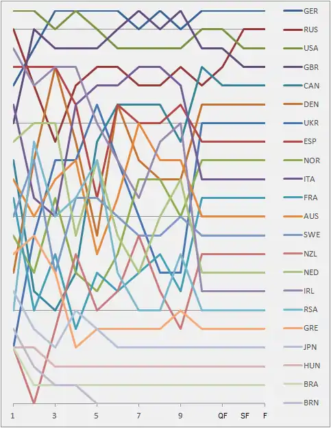 Graph showing the daily standings in the Solingr during the 1996 Summer Olympics