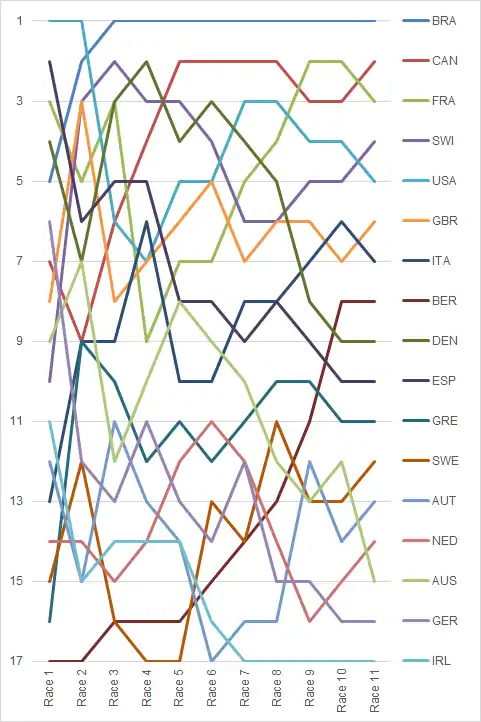 | Pos. | Pts. | Pos. | Pts. | Pos. | Pts. | Pos. | Pts. | Pos. | Pts. | Pos. | Pts. | Pos. | Pts. | Pos. | Pts. | Pos. | Pts. | Pos. | Pts. | Pos. | Pts. | ||||||