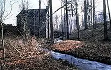 While agriculture was the primary subsistence and economical activity of the region, the seigneury of Montarville, thanks to its proximity to Mount Saint-Bruno, benefited much from the industrial activity that developed around the hydraulic power it could harvest from the mountain's many ponds and streams. The first water mill was erected in 1725 and in the 19th century, they numbered six in the territory and permitted such activities as grinding grain, milling wood, tanning leather and carding and spinning wool.[7]