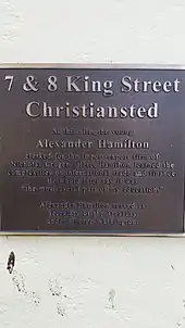 Future Founding Father Alexander Hamilton and his brother lived with their mother Rachel Faucette on Saint Croix, after she returned to the island in 1765. Their residence was in the upper floor of a house at 34 Company Street, while Rachel used the lower floor as a shop selling food items. Within two years, however, Hamilton lost his father, James Hamilton, by abandonment, and his mother to death. Official documents from the island, a 1768 probate court testimony from his uncle, established Alexander's age at 13. By 1769, Hamilton's cousin, aunt, uncle, and grandmother had also died. His brother James became an apprentice carpenter, and Alexander Hamilton became the ward of Thomas Stevens, a merchant on King Street. Hamilton was soon clerking in the export-import business of Beekman and Cruger, at the intersection of King and King's Cross Streets. In 1772, local businessmen funded Hamilton's further education in New York.[8]
