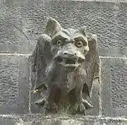 An 1881 estimate by the local stonemason McLeod suggests that Burges provided around 844 sculptures, of which around 412 were for the interior.[26] The total of some 1,260 sculptures include 32 gargoyles, each with different animal heads.[40] Burges oversaw nearly all aspects of the design, headquartered in his office in Buckingham Street and on numerous site visits. Most modern scholars agree that his overarching control over the design of the architecture, statuary, stained glass and internal decorations, led to the cathedral's unity of style.[7] He considered sculpture as an "indispensable attribute of architectural effect"[41] and, at Saint Fin Barre's, believed he was engaged upon "a work which has not been attempted since the West front of Wells Cathedral".[41] In the designs for the pieces decorating the cathedral, Burges worked closely with Thomas Nicholls, who constructed each figure in plaster,[41] and with McLeod and local stonemasons, who carved almost all of the sculptures in situ.[41]