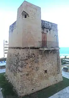 Saint George's Tower is located at St. George's Bay, St. Julian's. Its site was originally occupied by a medieval watch post.[1] It appears in maps of the period of the Knights at Cala S. Giorgio (St Georeg’s Point).[2] The tower remained in use during the British period but was converted to a Fire Control Station once Fort Pembroke was built. The tower served as a radio communications post in World War II.[3] The tower appears in a 1916 painting with the British additions.[4][5]