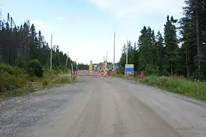 The Saint Just de Bretenières - St. Juste Maine Border Crossing is primarily used by Canadian logging trucks to access the privately owned land in Maine. This crossing was opened in 2003 when it was determined that access was for logging operations was better at this location than at Daaquam about 3 miles to the north. New facilities were built at St. Juste and the border services staff were moved there. The Daaquam crossing was closed and barricaded.[1]