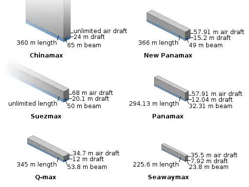 | Maximum boat length | 740 ft 0 in (225.6 m) |