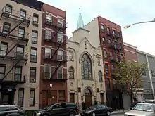 Saints Kyril & Metodi Bulgarian Eastern Orthodox Diocesan Cathedral (sometimes SS. Kiril and Methodi) is the cathedral church and headquarters of the Bulgarian Orthodox Church Diocese of the United States, Canada, and Australia. The church is located at 552 West 50th Street, between Tenth and Eleventh Avenues, Hell's Kitchen / Clinton, Manhattan, New York City.[1][2]:221