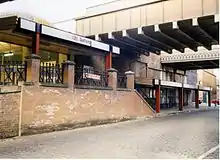 The railway station opened on 29 May 1838 as a terminus on the Manchester and Bolton Railway and was originally named Salford railway station.[1] In 1843, a connection to Manchester Victoria was built, carried on iron columns. The roof suffered from corrosion caused by the sulphurous emissions of locomotives passing through the station and one was replaced after only four years.[2] Between April 1858 and August 1865, to avoid confusion with Salford (Oldfield Rd),[3] the station was named Salford (New Bailey Street), after which it reverted to its original name of Salford.[1]