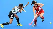 She was not selected for the Great Britain squad for the London 2012 Olympic Games,[3] but did play for England at the 2013 Women's EuroHockey Nations Championship,[8] at the 2014 Women's Hockey World Cup (where the England team finished eleventh of twelve, their worst-ever placing),[13] and at the 2014 Commonwealth Games where the team won silver.[14]