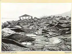 After the outbreak of World War II and with the Japanese advance into the Pacific the Australian Government ordered the evacuation of Samarai in January 1942 and later in the year it was destroyed to stop the wharves and buildings falling under Japanese control.[4] In July 1943 a detachment of US Navy Seabees established a small seaplane base on the island. Despite a lack of materials the base including a 50 feet (15 m) ramp and hangar was constructed in 42 days.[6]