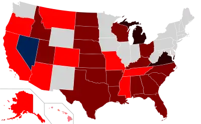 29 states have constitutions that include bans on same-sex marriage and/or other types of unions, and 31 have statutes that ban same-sex marriage and/or other types of unions, although these are all defunct under the Obergefell ruling. In November 2020, Nevada became the first state to repeal its constitutional ban on same-sex marriage.