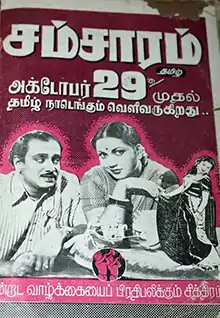 Samsaram (transl. Wife) is a 1951 Indian Tamil-language drama film directed by Chandru and produced by S. S. Vasan. A remake of the 1950 Telugu film of the same name, it stars M. K. Radha, Pushpavalli, Kumari Vanaja, Sriram, M. S. Sundari Bai, T. R. Ramachandran, D. Balasubramaniam, R. Balasubramaniam, K. N. Kamalam, and Kamalaveni Ammal. It was simultaneously filmed in Hindi as Sansar, which Vasan directed.[2]
