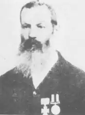 For his gallant conduct at the attack at Te Papa, Tauranga, on the 29th of April last, in entering the Pah with Commander Hay, and when that Officer was mortally wounded, bringing him out, although ordered by Commander Hay to leave him, and seek his own safety. This man was at the time 'Captain of the Fore-top' of the "Harrier," doing duty as Captain's Coxswain; and Commodore Sir William Wiseman brings his name to special notice for this act of gallantry.[3]