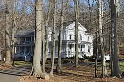 The Samuel Simpson House (also known as the Taber House) is a historic house at 1370 Scard Road in Wallingford, Connecticut. Built in 1838 by John Meigs Hall, it was the home of 19th century industrialist and philanthropist Samuel Simpson. Some of the house's structural beams, repurposed from an older building in the same location, date back to the 1600s.[2] Around 1867, the home was extensively redesigned by renowned New Haven, Connecticut architect Henry Austin, giving it Renaissance Revival characteristics.[3]