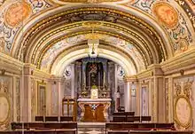 San Anton Palace contains two chapels, one dedicated to Our Lady of Pilar and another dedicated to St. Anthony. The Chapel of Our Lady of Pilar was built by Grand Master António Manoel de Vilhena in the 18th century.[6] It consists of a barrel-vaulted nave, with ribs dividing the ceiling into six bays. The vault is decorated with the coats of arms of de Vilhena, and subsequent Grand Masters Manuel Pinto da Fonseca and Emmanuel de Rohan-Polduc. The altar is set within a chancel separated from the nave by pilasters.[1]