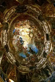 The church houses frescos by Luca Giordano and Francisco Ricci. The prolific Neopolitan painter Giordano was court painter (1692-1702) to Charles II of Spain, and active for the Royal Palace and the Buen Retiro Palace.