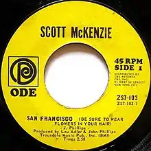 "San Francisco (Be Sure to Wear [Some] Flowers in Your Hair)" is a psychedelic pop song, written by John Phillips, and sung by Scott McKenzie.[2] The song was produced and released in May 1967 by Phillips and Lou Adler, who used it to promote their Monterey International Pop Music Festival held in June of that year.[3]