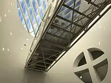 The designs for the expanded building include such new features as a large-scale vertical garden on the third floor, slated to be the biggest public living wall of native plants in San Francisco; a free ground-floor gallery facing Howard Street with 25-foot (7.6 m) tall glass walls that will place art on view to passersby; a double-height "white box" space on the fourth floor with sophisticated lighting and sound systems; and state-of-the-art conservation studios on the seventh and eighth floors. The expansion facades will be clad with lightweight panels made of Fibre-Reinforced Plastic; when completed, this will be the largest application of composites technology to architecture in the United States.[34] The building is on track to achieve LEED Gold certification, with 15% energy-cost reduction, 30% water-use reduction, and 20% reduction in wastewater generation.[35] The Botta staircase was removed.