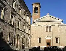 The church was built during 1553–1575 adjacent to a Benedictine order abbey. The present structure was built at the site of a 9th-century church dedicated to Santi Apostoli Pietro e Paolo. The Benedictines were suppressed in 1797 by Napoleonic forces.