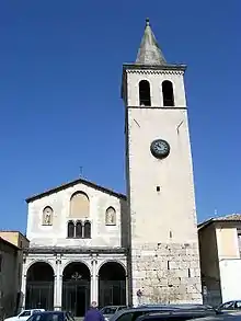 San Gregorio Magno is a Romanesque-style, Roman Catholic basilica church located in front of the piazza Garibaldi in the town of Spoleto, in the province of Perugia, region of Umbria, Italy.