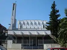 It was built in the twentieth century by the architect Aldo Aloysi. The church is located in an elevated position with respect to the square outside, and is accessed by a ladder on the left side. exposed totally built of reinforced concrete, the church is flanked by a high bell tower, which features a statue of Christ with outstretched arms.