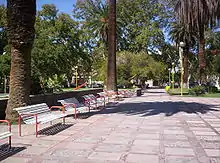 It is a modern city with wide streets and well-drawn avenues with wide sidewalks and vegetation of different species of trees irrigated by canals, from which it derives its nickname oasis town.