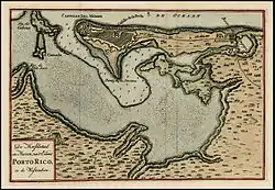 The ambiguous use of San Juan Bautista and Puerto Rico for both the city and the island in time led to a reversal in practical use by most inhabitants: by 1746 the name for the city (Puerto Rico) had become that of the entire island, leading to the city being identified as Puerto Rico de Puerto Rico on maps of the era.[11][12][13]