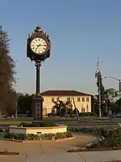 Across from City Hall is the Centennial Clock, standing at the northeast corner of Huntington Drive and San Marino Avenue, donated to the community in 2005 by the Rotary Club of San Marino in celebration of Rotary International's 100th anniversary. Dedicated on July 4, 2005, the nineteen foot high clock includes a time capsule with artifacts donated by residents and community organizations which is to be opened on July 4, 2039 to mark the 100th anniversary of the Rotary Club of San Marino.[30]