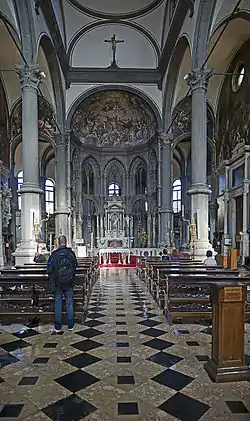 The artist Alessandro Vittoria is buried in the church, his tomb marked by a self-portrait bust.