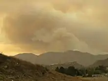 ![]() View of the smoke plume of the Sand Fire from Hansen Dam, July 23, 2016 | |
