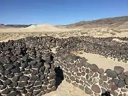 ![]() Ruins of the Sand Springs Station, with Sand Mountain visible in the background | |