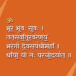 व्याहृत्यादि शिरोंतंच प्राणायाम त्रयत्रिकम्॥ (विश्वामित्र कल्पः 2.3)[23] - The śiromantra of gāyatrī is om āpojyōti rasomṛtaṃ brahma bhūrbhuva ssuva rom (Sanskrit:ओम् आपोज्योति रसोऽमृतं ब्रह्म भूर्भुव स्सुव रोम्)