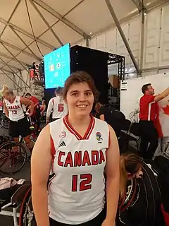 From there Bérubé progressed to the CIVA team, and has represented Quebec at both the junior and senior levels. Team Quebec came third at the CWBL Women’s National Championship in Burlington, Ontario in 2017, and second in the CWBL Women's National Championship in Richmond, British Columbia, in 2018.[1] In 2018, she was part of the Canadian national women's team for the 2018 Wheelchair Basketball World Championship in Hamburg.[1] The Canadian team came fifth, as they had at the 2016 Paralympic Games two years before.[3]