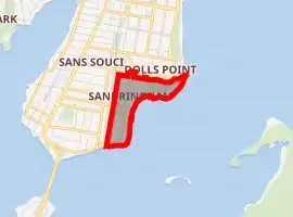 Sandringham is a quiet residential suburb on the western shore of Botany Bay, at the mouth of the Georges River. Cook Park runs along the eastern and southern border and the beach stretches from Dolls Point to Sandringham Bay. The Georges River Sailing Club sits on the foreshore. A small group of shops is located at the intersection of Clareville Avenue and Russell Avenue, on the border with Sans Souci and Sandringham.