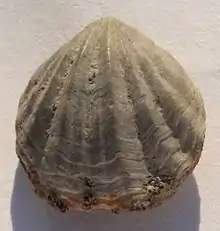 ![]() An Choristothyris plicata, lampshell, collected at Navesink Formation, near Poricy Brook, New York | |