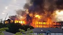 On June 23, 2017, the largest mill fire Sanford firefighters have ever battled erupted. The flaming five-story back building of the former Stenton Trust Mill complex at 13 River Street brought more than 100 firefighters from 20 communities to battle the blaze. The 294,000-square-foot (27,300 m2) complex, which was built in 1922 as a textile mill, includes two five-story brick and concrete buildings and a one-story connecting structure. Two days later, three boys from Sanford, two 13-year-olds and a 12-year-old, were charged with felony arson in connection with the fire. They pleaded guilty to criminal mischief and were placed on probation for a year.