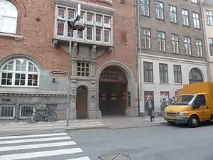 KTAS was first based in the Jorcks Passage complex. The company acquired the site in Nørregade from 1899 and the architect Fritz Koch was selected for the task of designing a new headquarters. Construction began in 1900 but progressed slowly due to financial difficulties. and 1909. Jens Ingwersen took over the project following Koch's death in 1906 and the complex was finally inaugurated in 1909. It was later expanded between 1917 and 1938, both with the incorporation of the existing properties at Nørregade 27 and 29 and with new buildings designed by Ingwersen on Larslejsstræde (No. 4–6) and Nørre Voldgade (No. 38) on the other side of the block. The complex contained both company headquarters, workshops and telephone main central.[1]