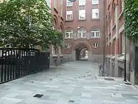 A series of interior courtyards creates a passageway linking Nørregade with Larslejsstræde. The complex also includes a small greenspace, Telefonistindehaven ("The Operator Girls' Garden"), which was renovated by Niels Junggreen Have in 1996.[3][5]