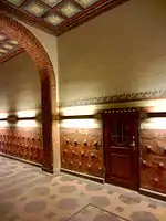 The office complex comprises 14 buildings with a total floor area of approximately 45,000 square metres.[3] It is built in red brick on a high granite plinth in a National Romantic style with many decorative details. The inner courtyard features some 40 portrait reliefs.