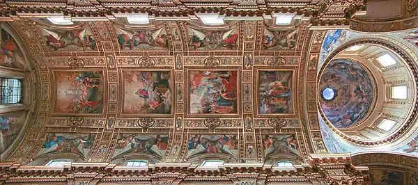 The fresco decoration of Sant'Andrea's dome was one of the largest commissions of its day. The work was disputed by two Carracci pupils, Giovanni Lanfranco and Domenichino. In 1608, Lanfranco had been chosen by Cardinal Alessandro, but the Ludovisi papacy of Pope Gregory XV favored the Bolognese Domenichino. In the end, both artists were employed, and Lanfranco's lavish dome decoration (completed 1627) set the model for such decorations for the following decades.[2] This dome was for a long time the third largest dome in Rome, after the Basilica of St Peter and the Pantheon.