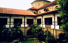 Adjoining the Santa Ana church is the convent, which was also built on the same period as the church under the direction of Fr. Vicente Inglés.[1] The ground floor is a stone and clay tile cloister surrounding the grassy patio. Above the cloister is a wooden corridor with capiz and glass windows and high doors leading to the priest's quarters, the choir loft and a room previously used as a library.[2] In 1966, archaeological excavations have been conducted by the National Museum of the Philippines on the patio and the churchyard, uncovering 71 human burials dating around late 11th to 14th centuries from the associated Chinese ceramics recovered with the graves.[10] The bulk of data gathered regarding the pre-Hispanic culture of Santa Ana (known as the ancient settlement of Namayan[1]) led to the construction of a site museum in the patio, which was later declared as a National Cultural Treasure on August 1973 by the virtue of Presidential Decree No. 260.[11]