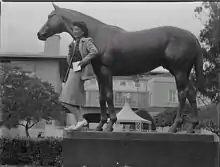 Due to its proximity to Los Angeles, Santa Anita has traditionally been associated with the film and television industries. The racetrack sequences in the Marx Brothers 1937 classic A Day at the Races were filmed there, and The Story of Seabiscuit with Shirley Temple was filmed on location in 1949.[5] It was also featured in A Star Is Born (1937).[6] Several stars, including Bing Crosby, Spencer Tracy, Errol Flynn, Alex Trebek, and MGM mogul, Louis B. Mayer, have owned horses that raced at the park.