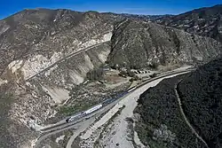 Although located just north of the heavily populated Los Angeles Basin, the 1,600 sq mi (4,100 km2) Santa Clara River watershed remains one of the most natural on the South Coast.[7] It is separated from the Los Angeles Basin by the low Santa Susana Mountains, along the north side of which the Santa Clara River runs. On the east are the San Gabriel Mountains, and on the north are the Santa Ynez Mountains, Sespe Mountains, San Cayetano Mountains, and Tehachapi Mountains. Piru, Castaic and Sespe Creeks, each over 50 mi (80 km) long, are the primary tributaries of the Santa Clara River. While Piru and Castaic Creeks form reservoirs for the California State Water Project (Pyramid Lake and Lake Piru on Piru Creek, and Elderberry Forebay and Castaic Lake on Castaic Creek), Sespe Creek is designated a National Wild and Scenic River, unique among Southern California streams. There are 57 archaeological sites and 12 historical landmarks in the watershed.[8]